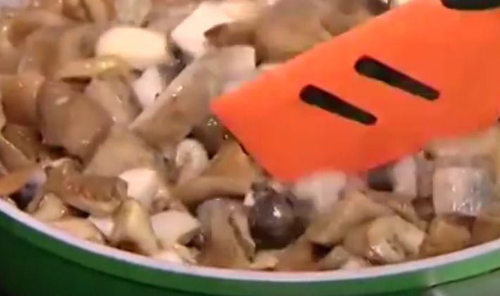 - Ils introduisent les champignons, les ajoutent et les font frire pendant 10 minutes supplémentaires, en remuant constamment la masse pour ne pas brûler.