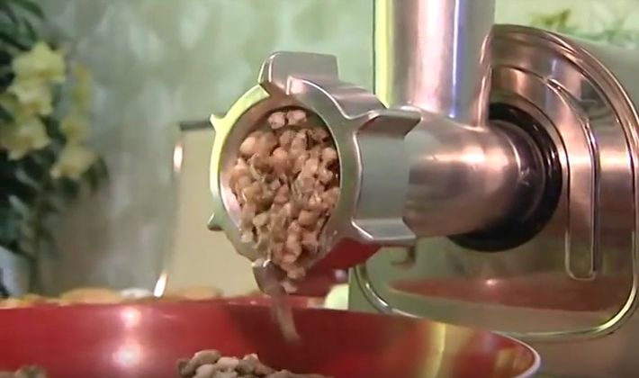 - Après refroidissement complet, la masse est broyée dans un hachoir à viande ou à l'aide d'un mélangeur.