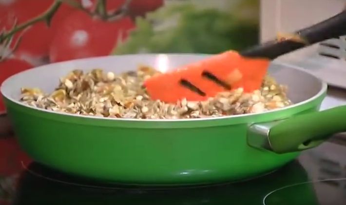 - Étaler à nouveau dans une casserole d'huile végétale et faire frire pendant 15 minutes.