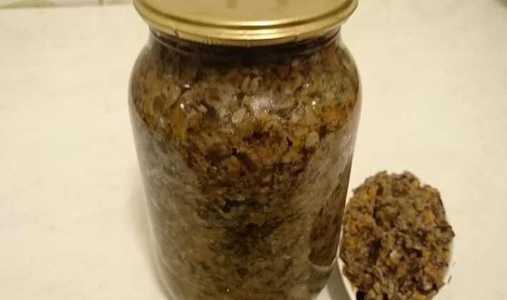 Le caviar de champignons préparé selon cette recette deviendra une source de fibres et de protéines de haute qualité pour le corps humain, susceptibles de satisfaire la faim.