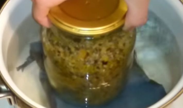 Nous mettons dans l'eau chaude et stérilisons à feu doux pendant 30 minutes.