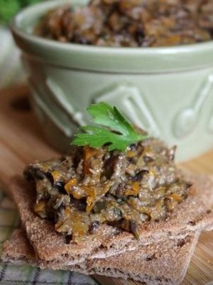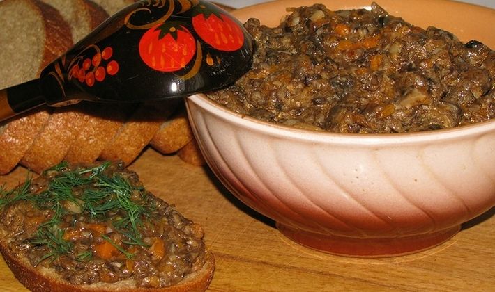 Le caviar de champignons, cuit avec des carottes et des oignons, peut être utilisé comme accompagnement de pommes de terre bouillies ou frites.