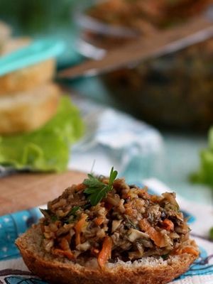 - Caviar de champignons cuit avec des carottes et des oignons