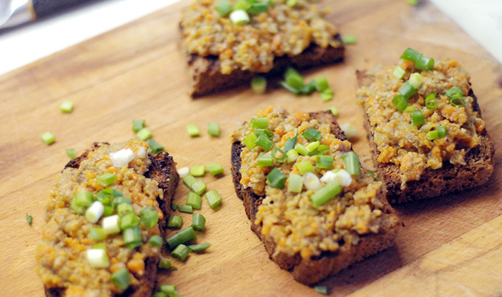 Une recette insolite qui diversifie parfaitement votre menu de tous les jours. Avec une telle collation, vous pouvez rencontrer de manière adéquate des invités inattendus et simplement boire du thé en étalant le produit sur du pain.