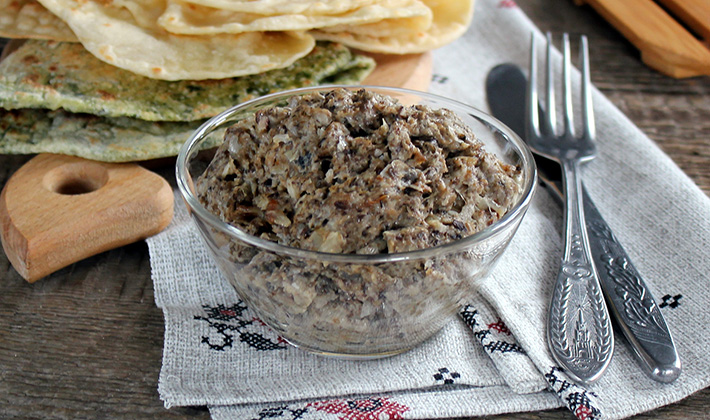 Nous proposons également une autre recette de caviar de champignons à base de trois. Dans ce cas, on utilisera de l'ail, ce qui donnera à l'apéritif une note appétissante et piquante.