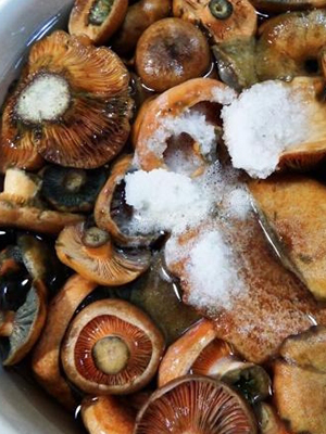 - Traitement initial des champignons: débarrassez-les des débris, rincez-les et, au besoin, selon une recette, puis faites-les bouillir dans de l'eau salée avec de l'acide citrique.