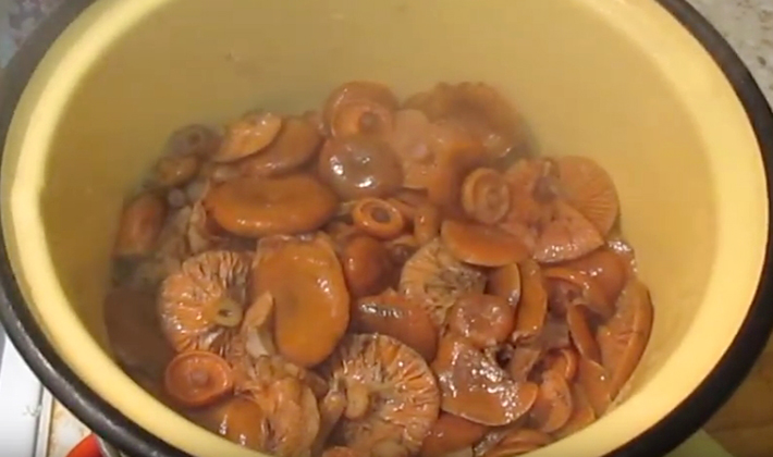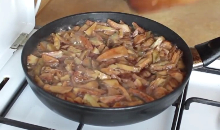 - Mettez les champignons pelés et lavés dans une casserole en émail et laissez bouillir pendant 20 minutes dans de l'eau salée.