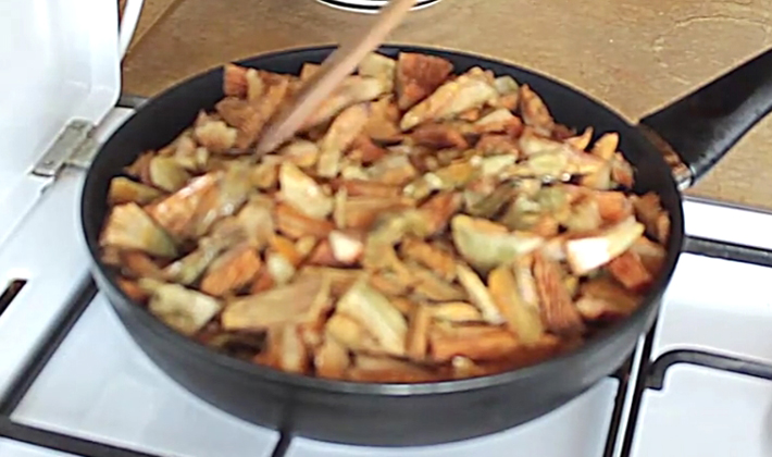Mettez dans une casserole sèche préchauffée et faites frire à feu moyen jusqu'à ce que tout le liquide soit évaporé.