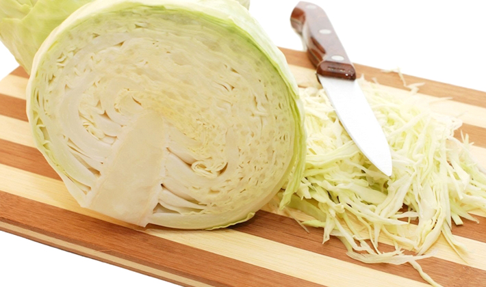 - Le chou est pelé des feuilles supérieures et haché finement.