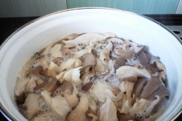 Les champignons pleurotes préparés selon la méthode ci-dessus doivent être bouillis avant le marinage. Astuce: il est préférable de mariner les petits champignons jeunes, ils peuvent être laissés entiers, et les grands chapeaux coupés en morceaux.