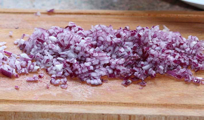 Pelez l'oignon et hachez-le très finement.
