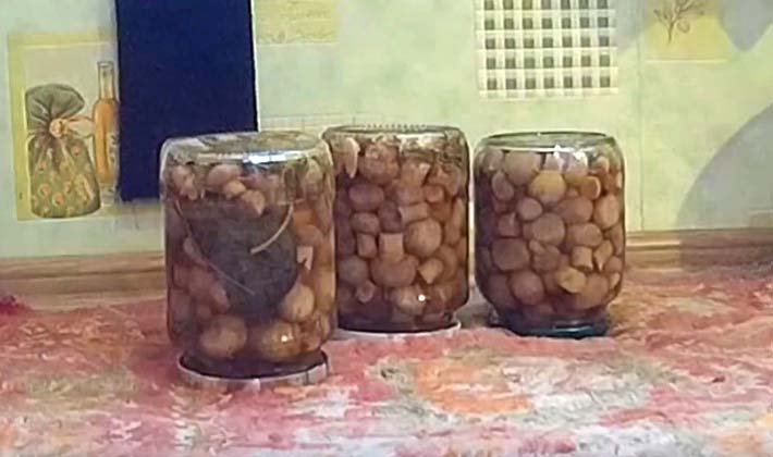 - Puis mettez les champignons dans des bocaux, versez-les uniformément avec l'huile dans laquelle ils ont été cuits, ajoutez du sel au goût, versez du vinaigre, mettez des épices.