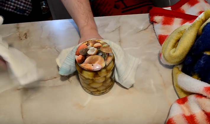 Pour éviter la formation de moisissure sur la marinade, vous pouvez verser délicatement une couche d'huile végétale bouillie.