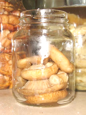 - S'il n'y a pas assez de saumure, vous devez ajouter de l'eau salée froide dans le bocal pour qu'il recouvre complètement les champignons.