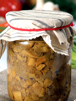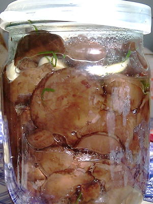 - Remplissez-les de champignons et versez la saumure obtenue.