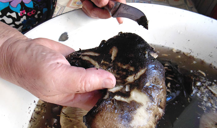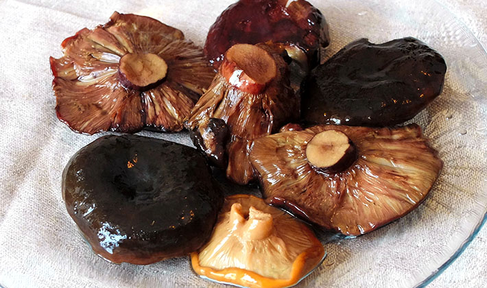 Avant de mariner rapidement les champignons noirs, les champignons récoltés par temps sec sont pelés, en enlevant toutes les parties endommagées, puis les champignons à la pulpe plus délicate sont rapidement lavés à l'eau froide, les champignons amers sont trempés pendant plusieurs heures ou toute la nuit.