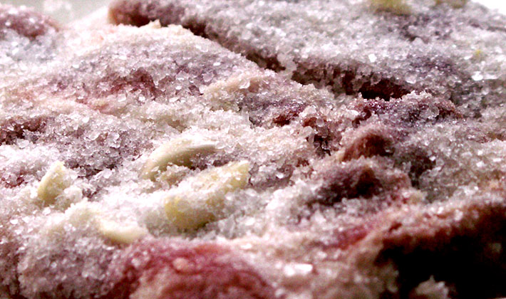 - ail haché, groseilles, cerises, parapluies à l'aneth et gros sel - au goût