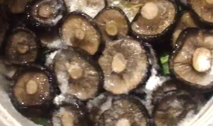 La saumure obtenue n'est pas versée, mais est utilisée avec les champignons ou même sans eux. Elle donne un goût agréable aux soupes et aux sauces.