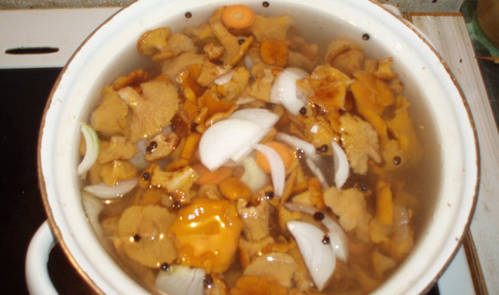 La recette pour les chanterelles en conserve est proposée avec une description étape par étape.