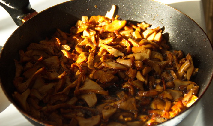 - Faire frire dans l'huile végétale jusqu'à coloration dorée et mélanger avec la masse de champignons.