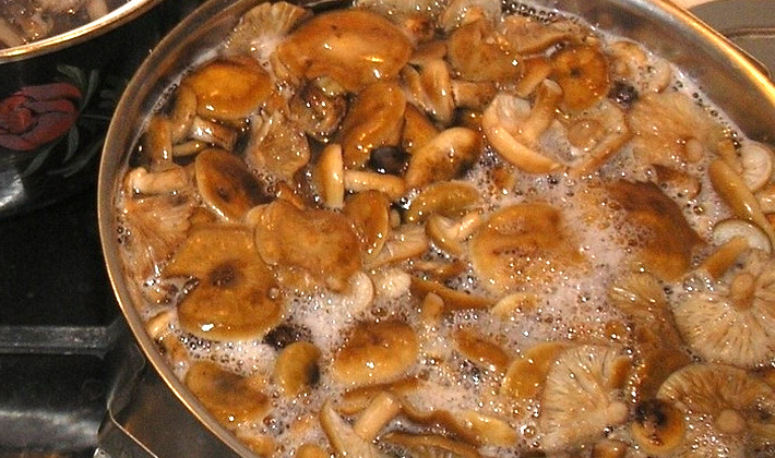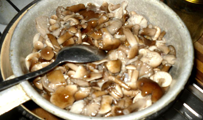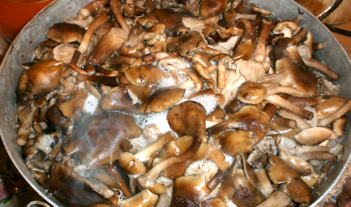 - Les champignons de miel sont bouillis dans de l'eau salée avec addition d'acide citrique pendant 20 minutes.