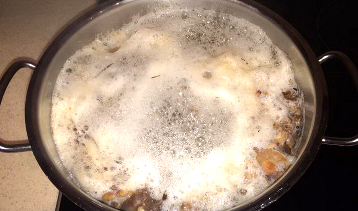 - Verser les champignons dans une casserole avec de l'eau, porter à ébullition, laisser bouillir pendant 20 minutes.