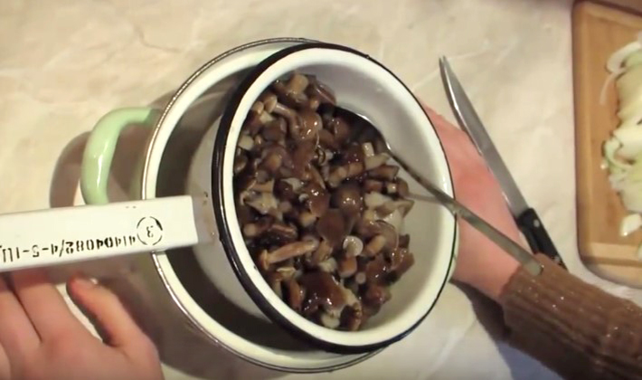 - Les champignons au miel sont nettoyés, lavés à grande eau et bouillis pendant 20 minutes.