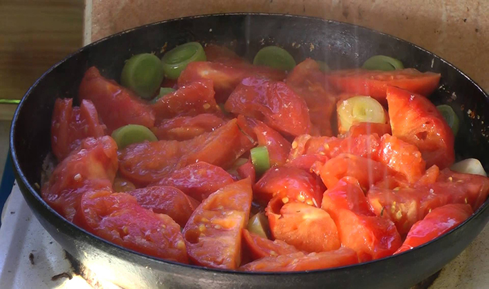 - Couper les tomates en dés et les mettre dans la pièce à cuire, laisser mijoter encore 30 minutes.