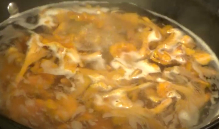 - Les chanterelles préparées blanchissent dans de l'eau bouillante pendant 5 minutes.