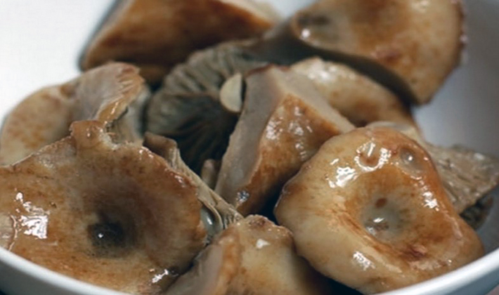 - Ensuite, faites bouillir les champignons dans de l'eau salée et légèrement acidifiée pendant 10 minutes.Égouttez le bouillon, versez de l'eau fraîche, mettez 1-2 oignons et laissez cuire encore 30 minutes, en enlevant périodiquement la mousse. Ensuite, retirez l'oignon, filtrez le bouillon dans la vaisselle, mélangez les champignons avec du sel.