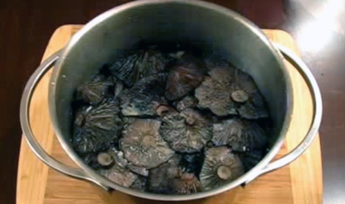 Pour cuire les champignons, les porcs doivent être nettoyés, si nécessaire, coupés et trempés dans de l’eau froide pendant une journée, une fois l’eau changée.