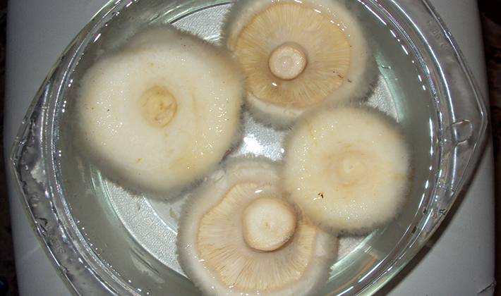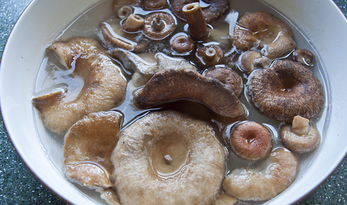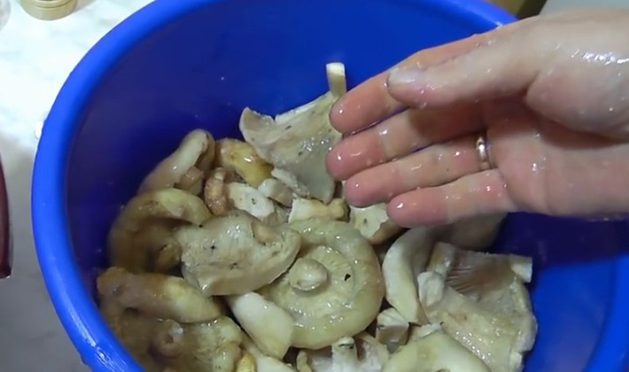 De nombreux champignons ont un goût et une odeur amers, piquants ou déplaisants. Ces carences sont éliminées si vous faites tremper les champignons dans l'eau pendant 2-3 jours ou si vous les faites bouillir. Les champignons sont placés dans un bol et remplis d'eau salée froide (1 litre d'eau pour 5 kg de champignons). Couvrir avec une serviette de table, puis avec un cercle en bois, sur le dessus - une charge. Les plats avec des champignons trempés sont mis au froid, il est préférable de les réfrigérer pour qu'ils ne s'acidifient pas. Temps de trempage de 1 à 3 jours. L'eau est changée au moins une fois par jour. Parfois, il vaut mieux remplacer le trempage par des brûlures. Les champignons au goût et à l'odeur désagréables et persistants doivent être bouillis. Champignons, trempés dans de l'eau bouillante et faire bouillir pendant 5 à 30 minutes. L'eau doit être déversée après chaque ébullition ou ébouillantage. Après la cuisson des champignons, bien essuyer la poêle avec du sel sec, bien laver et essuyer.