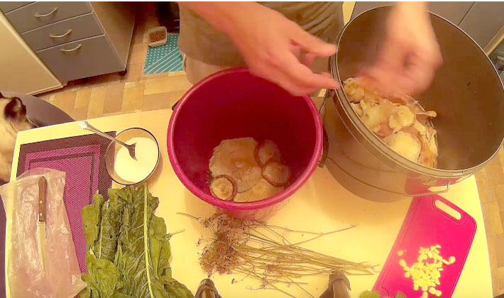 - Après 3-4 jours, les champignons vont bien égoutter le jus et se couvrir complètement de saumure, ce qui accélérera leur salage.