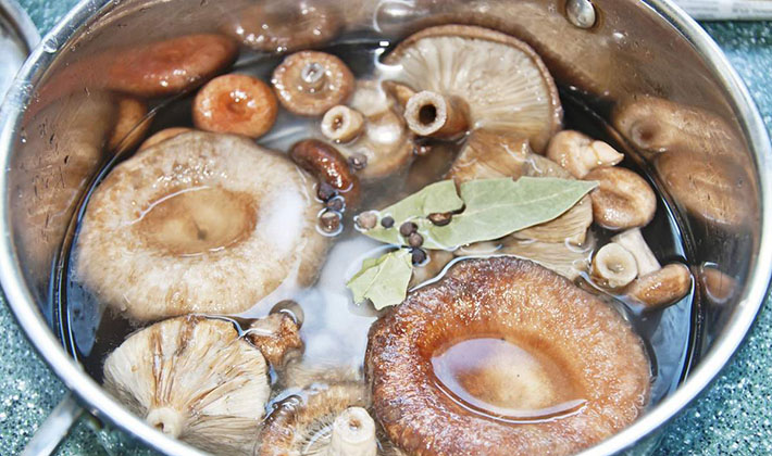 Avant le salage, les champignons doivent être blanchis à l'eau bouillante pendant 3 à 5 minutes.