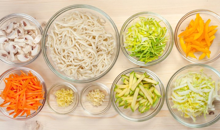 Pour commencer, rincez et épluchez les légumes, coupez-les en une fine paille.