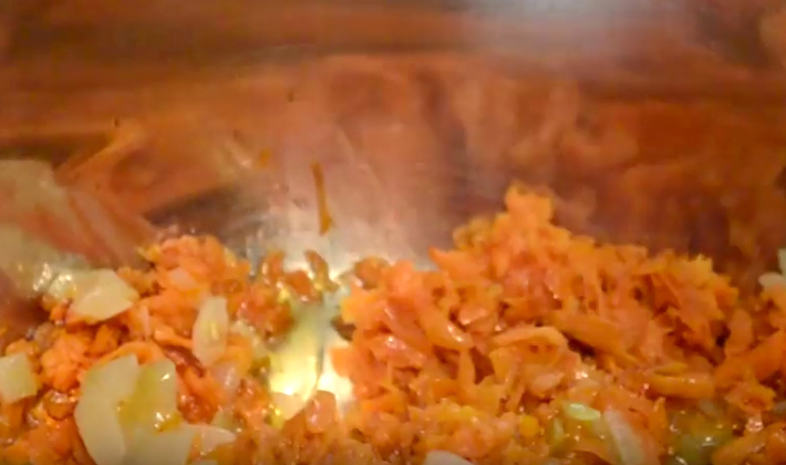 Faites chauffer la poêle, versez-y de l'huile et faites cuire les champignons pendant 10 minutes, puis envoyez-leur les carottes et laissez-les passer 20 minutes de plus.