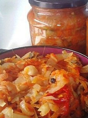 Une telle soupe aux choux aux champignons, préparée pour l’hiver selon la recette présentée ci-dessous, sera un excellent accompagnement pour tous les plats. Pour commencer, hachez le chou finement, coupez les oignons et les carottes en lanières. Mélangez tout cela avec votre main et du sel, en même temps, écrasez un peu pour mieux mettre en valeur le jus de chou. Broyez les champignons avec des pailles et faites-les frire dans l'huile pendant au moins un quart d'heure, puis ajoutez le mélange de légumes et laissez mijoter pendant 30 minutes. Verser la sauce tomate avec du vinaigre, ajouter le poivron, les herbes et cuire à couvert 10 minutes. Bien que le plat ne soit pas refroidi, mettez-le dans des bocaux préalablement stérilisés et fermez bien les couvercles.