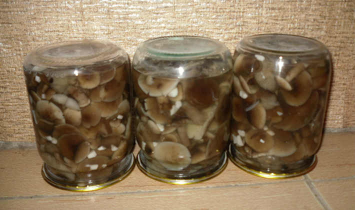 - Disposez les champignons avec la marinade dans des récipients, roulez les couvercles et, après avoir complètement refroidi, sortez-les dans une pièce fraîche - une cave ou une cave.