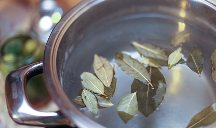 Retirer les feuilles de laurier de la marinade et les jeter.