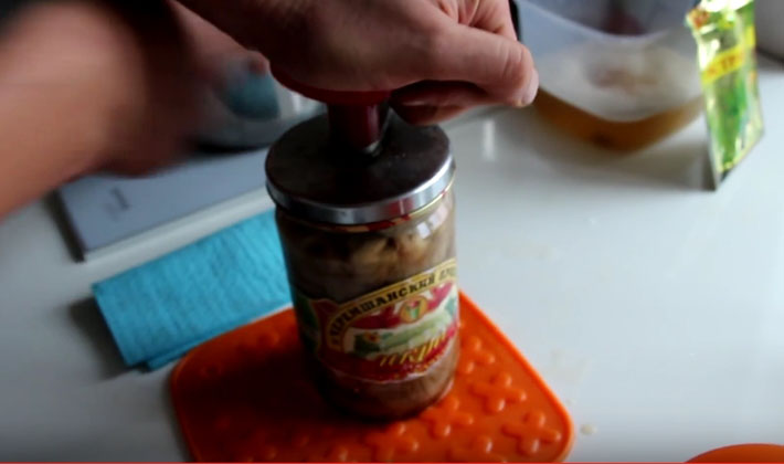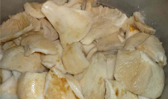 - Les champignons sont retirés de la saumure chaude et emballés dans des pots stérilisés.