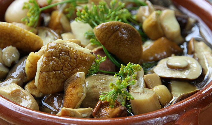 - Si des moisissures apparaissent dans les pots, jetez les champignons dans un tamis ou une passoire, rincez-les à l'eau bouillante, faites une nouvelle marinade selon la même recette, digérez-y les champignons, puis mettez-les dans des pots propres, calcinés, et remplissez à nouveau de marinade.