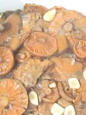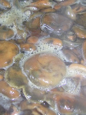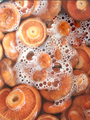 - Ensuite, la marinade est filtrée et remise sur le feu, les champignons pelés et lavés y sont immergés.