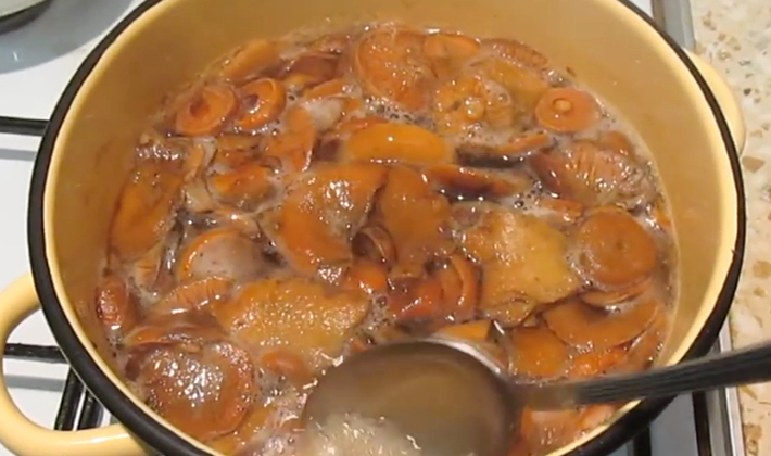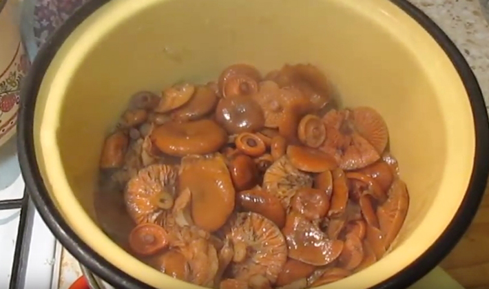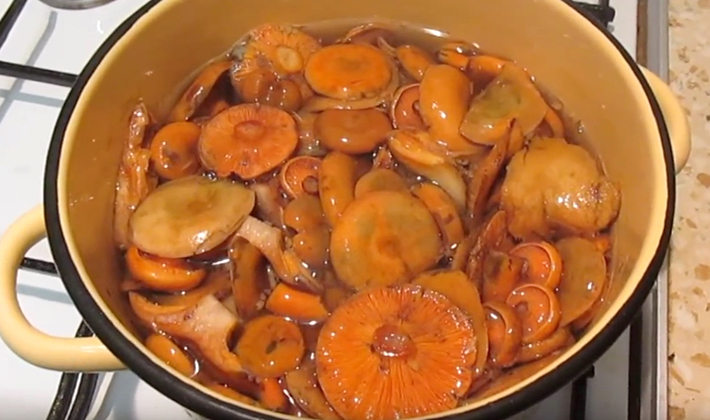 - Dans un récipient non métallique, faites bouillir les fructifications pendant 5 minutes et transférez-les dans une casserole avec la marinade.