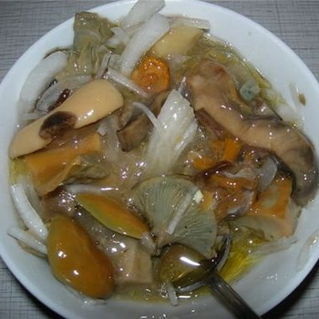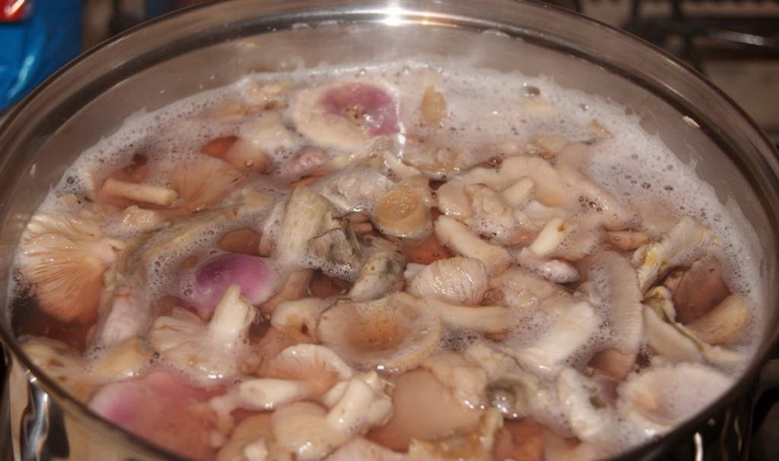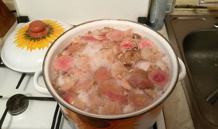 - Rincez doucement le russula et laissez-le tremper pendant 2 jours dans de l’eau froide, qui doit être changée trois fois par jour (matin, après-midi et soir). La dernière fois que vous avez besoin de les faire tremper dans l’eau salée pendant 6 à 8 heures. Pour 5 l d'eau, vous devez ajouter 100 g de sel;