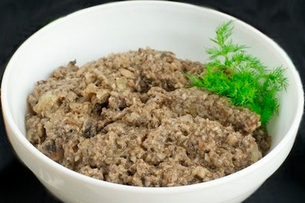 Mélangez les champignons broyés avec les oignons, ajoutez du vinaigre, un peu d'huile végétale, du sel, du poivre moulu. Remuer, laisser mijoter 15 minutes.