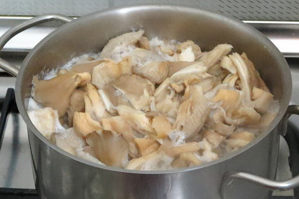 Couper les pleurotes en petits morceaux, les mettre dans l'eau bouillante et laisser bouillir 15 minutes.