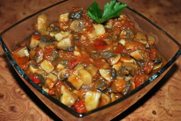 Nous suggérons d'utiliser notre recette et de préparer un méli-mélo avec des champignons et de la pâte de tomate pour l'hiver. Au lieu de pâtes, vous pouvez prendre des tomates fraîches, mais dans ce cas, vous devez les peler et les épépiner.