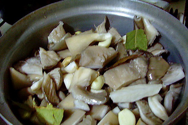 Couper les pleurotes en gros morceaux, les mettre dans l'eau bouillante et laisser bouillir 15 minutes.