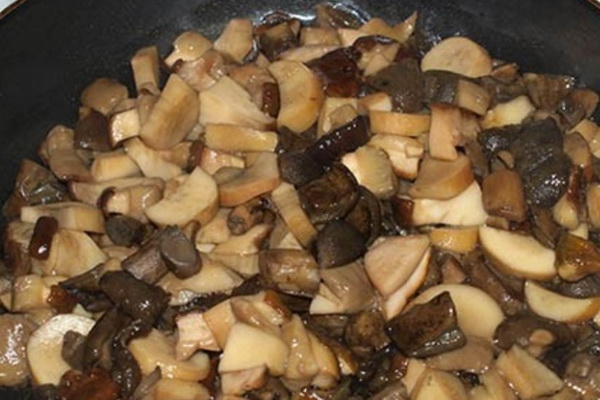 Faites chauffer l'huile végétale dans une casserole, mettez les champignons et faites frire pendant 20 minutes en remuant continuellement.