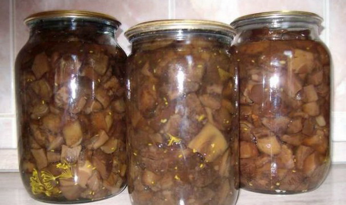 La «recette de grand-mère» est l’un des moyens les plus populaires de cuire et de saler les champignons de porc pour l’hiver. Il diffère de ceux énumérés ci-dessus en ce qu'il prévoit l'utilisation de sucre, d'essence de vinaigre et de clous de girofle.